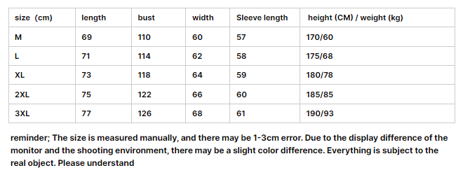 Size: M, L, XL, 2XL, 3XL